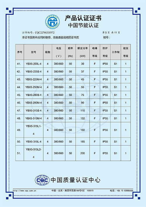 YBX5系列隔爆型三相異步電動機隔爆性能符合GB3836.1-2010《爆炸性環境 第1部分:設備 通用要求》和GB3836.2-2010《爆炸性環境 第2部分:由隔爆外殼“d” 保護的設備》的規定。電動機機械電氣性能符合Q/HSD 17-2021《YBX5系列隔爆型(ExdIICT4)三相異步電動機技術條件(機座號63~355)》。